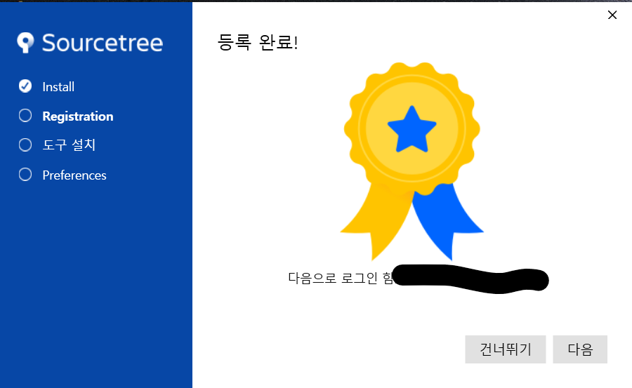 Mercurial(분산 버전 관리 시스템중 하나)은 체크 해제 후 "다음" 클릭