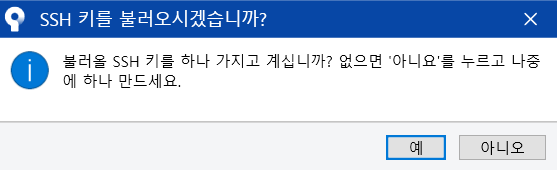 SSH 키를 보유하고 있다면 등록하고, 아니라면 ""아니오 클릭. (추후 등록 가능 하다.)