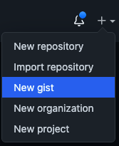 프로필 옆에 +를 눌러서 New gist를 생성하기