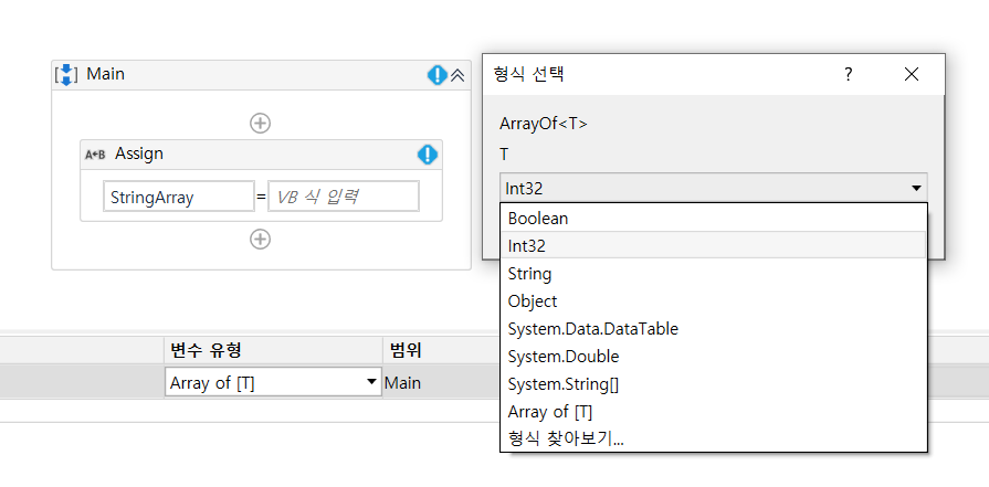 UiPath의 데이터 유형은 VB에서 차용한다.