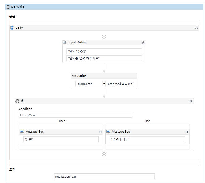 Do While과 While의 주요 차이점은 Do While의 경우 포함된 활동이 한 번 이상 실행된다는 것입니다.
