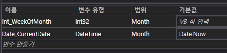 코드를 입력 하기 이전에 N주차를 구하기 위한 변수를 2가지 선언 할것 이다.