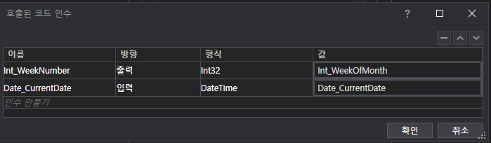 인수 편집에서 생성 한 변수를 지정해 준다.