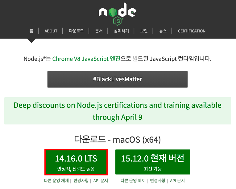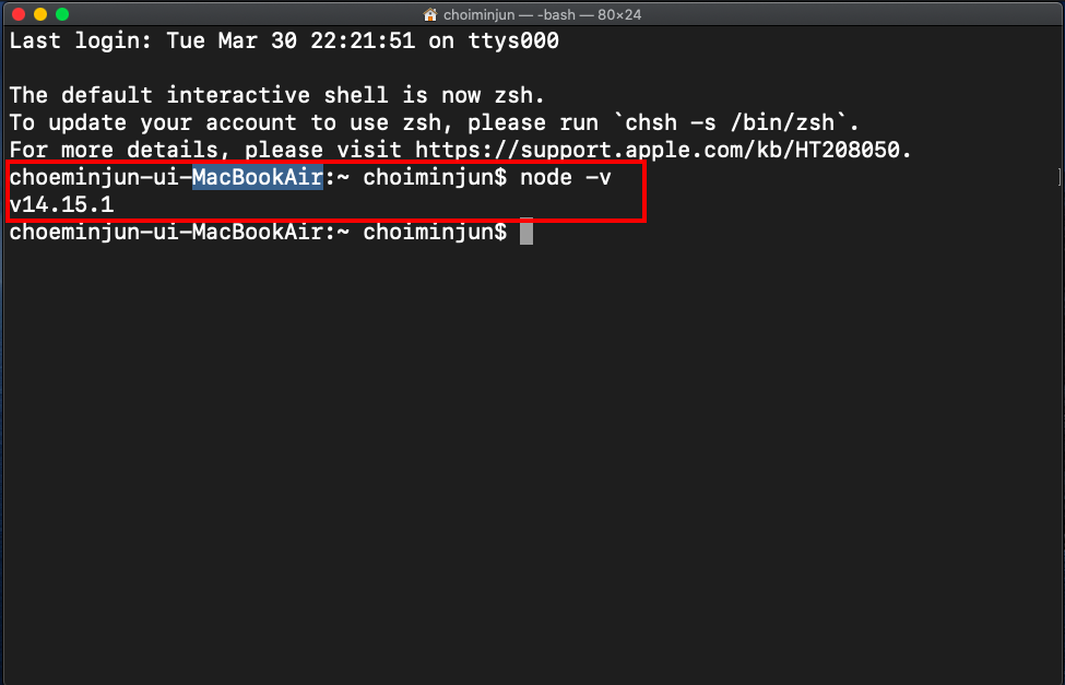 위에 코드를 맥인 경우 터미널, 윈도우인 경우 터미널에 입력해서 node가 제대로 설치 되었는지 확인하자.