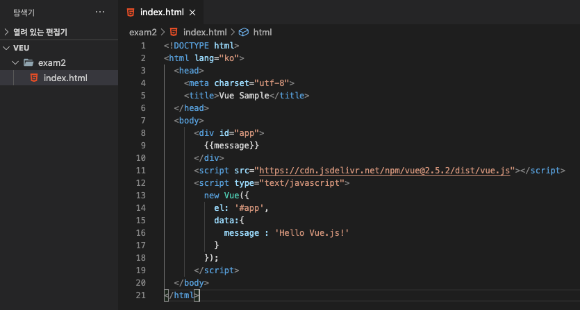 HTML파일을 생성하고 위와 같이 코드를 작성 하자