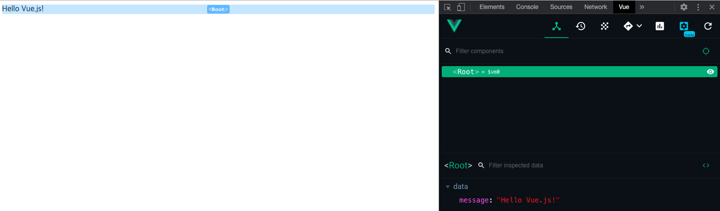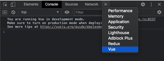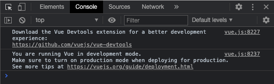 이 로그를 통해 뷰 라이브러리가 정상적으로 로딩이 되었고, 현재 개발자 모드로 뷰가 실행되고 있다는 것을 파악 할 수 있다.