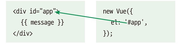 #app 값은 화면의 돔 요소 중 app이라는 아이디를 가진 요소를 의미.