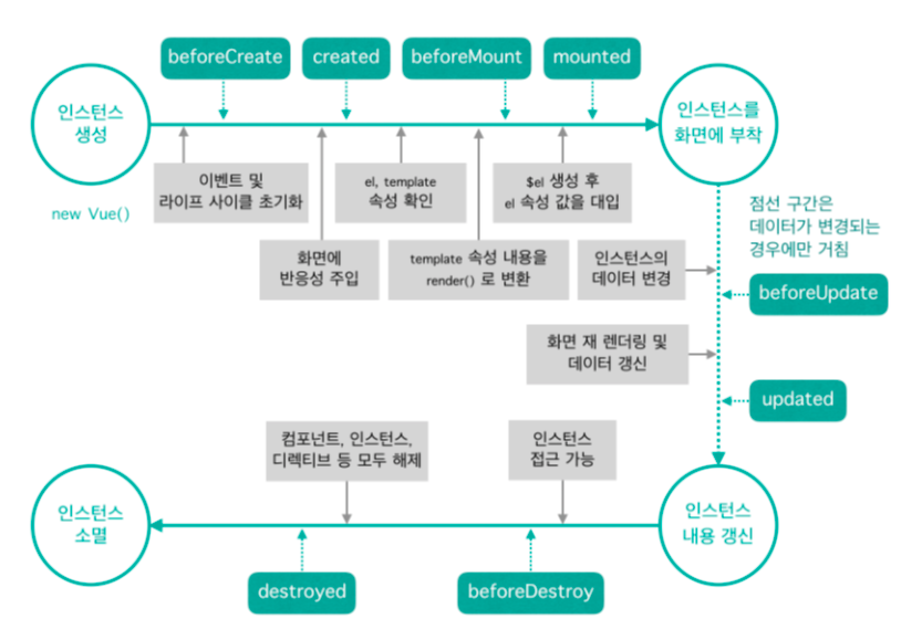 | created | 뷰 인스턴스가 생성되자마자 실행할 로직을 정의할 수 있는 속성 |