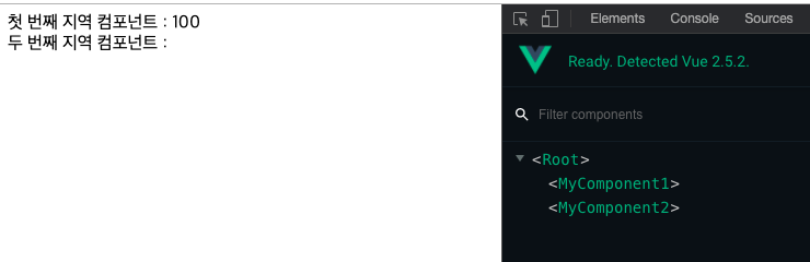 template: '<div>첫 번째 지역 컴포넌트 : {{cmp1Data}}</div>',