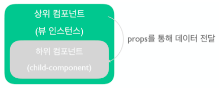 <child-component v-bind:props 속성 이름="상위 컴포넌트의 data속성"></child-component>
