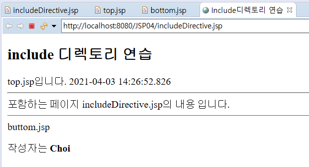 포함하는 페이지 includeDirective.jsp의 내용 입니다.