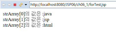 out.println("strArray["+i+"]의 값은 :"+strArray[i]+"<br>");