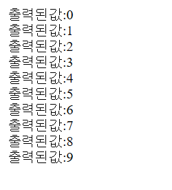 out.println("출력된값:"+i+"<br>");