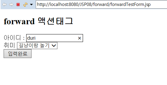포워딩 하는 페이지 forwardTest.jsp로 절대 표시되지 않는다.<br>