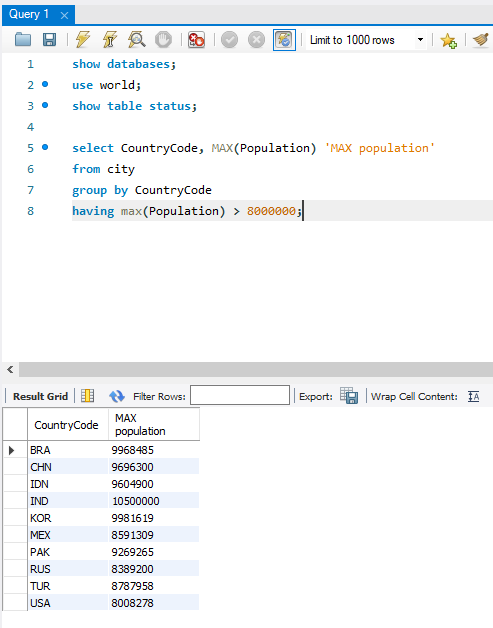 1. WHERE과 비슷한 개념으로 조건 제한 : HAVING