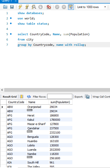 group by절과 with rollup문 사용