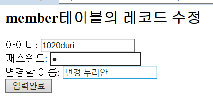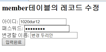 <h2>member테이블의 레코드 수정</h2>