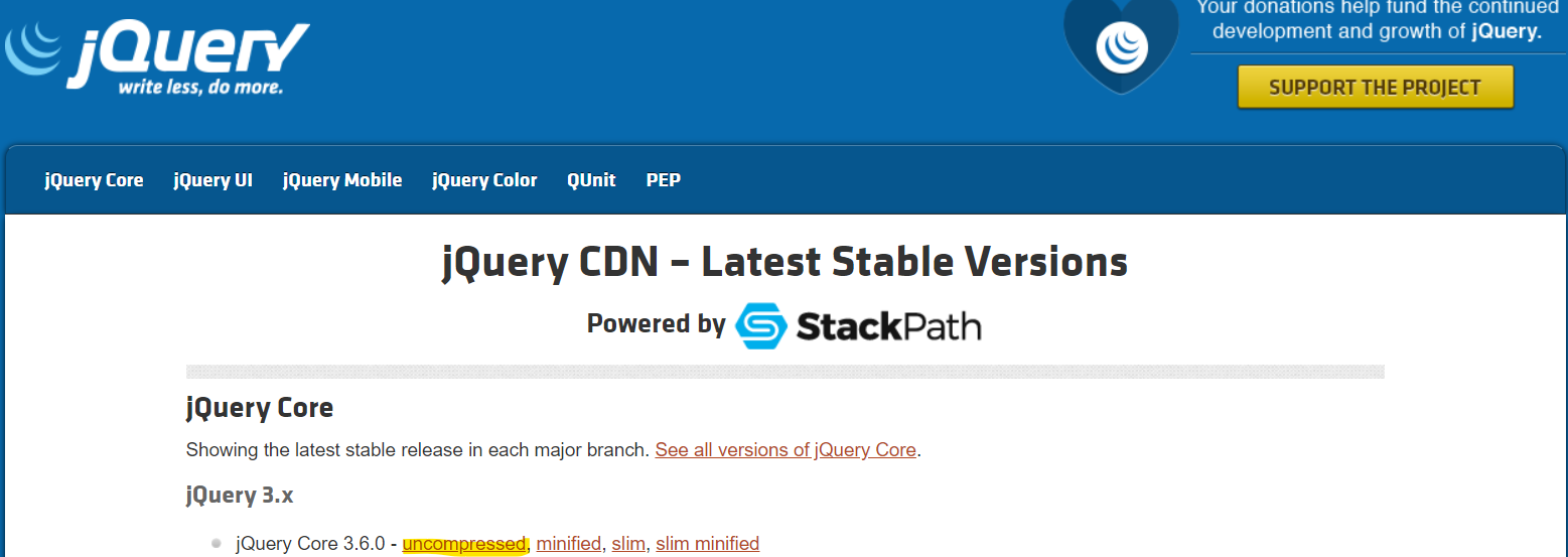 사이트 방문 이후 Download jQuery로 들어간다.