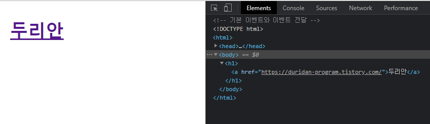 <!-- 기본 이벤트와 이벤트 전달 -->